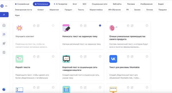 Использование готовых шаблонов сильно облегчает задачу создания текстов или статей, позволяя получить нужный ответ на ваш вопрос. Шаблоны представляют собой разные темы и стили, так что их легко подстроить под свои потребности. Особенно это полезно для тех, кто не очень уверенно чувствует себя в работе с чат-ботами для создания контента на базе AI и иногда получает не совсем те результаты, которые ожидал