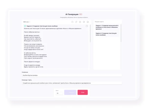 - Вариативность: Возможность создания множества вариантов и выбор лучшего из них, а также возможность изменить описание для новых идей.